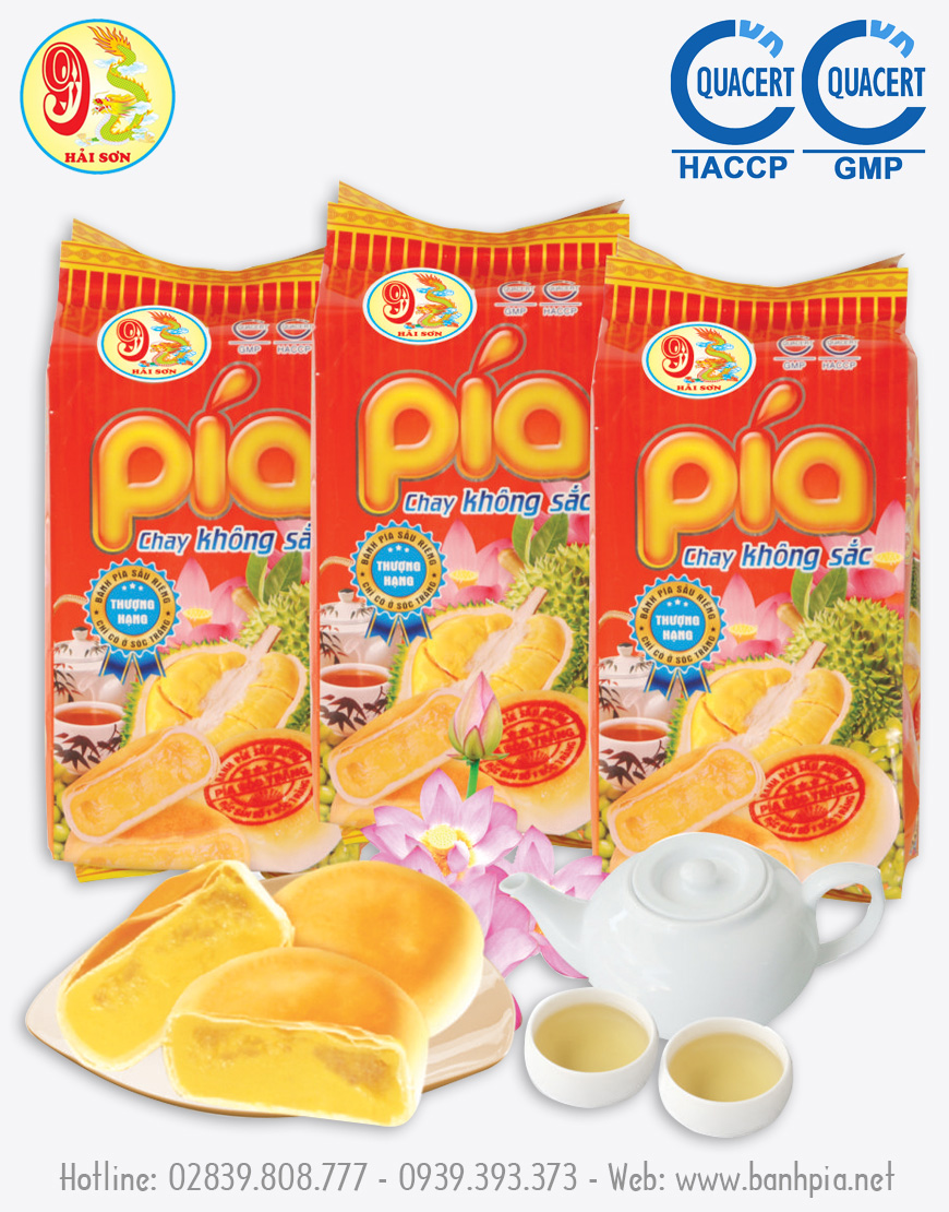 Bánh Pía Chay Sầu Riêng Đậu Xanh là sản phẩm nổi bật của Bánh Pía Hải Sơn. Sản phẩm dành riêng cho người ăn chay, không có trứng muối.